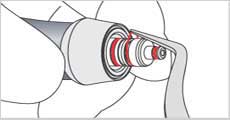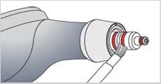 Usando lo spazzolino fornito in dotazione pulire bene la zona interna dell'attacco del manipolo e quella dell' O-ring del contenitore della polvere. |